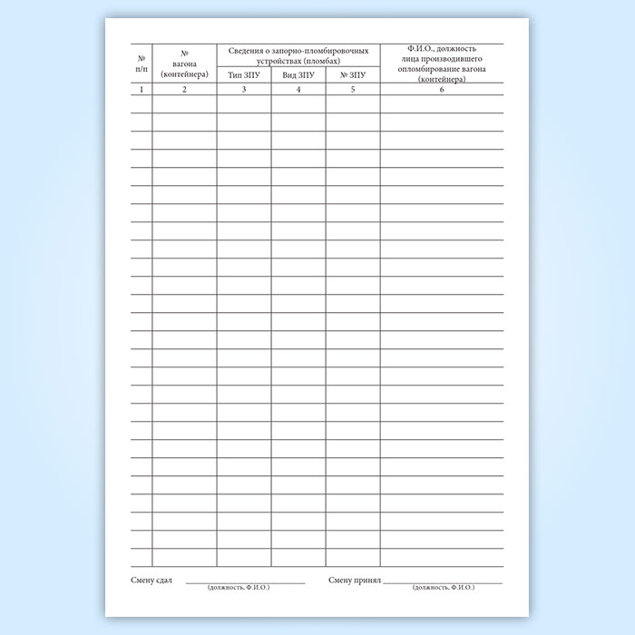 Книга пломбирования вагонов и контейнеров имеет графы:
