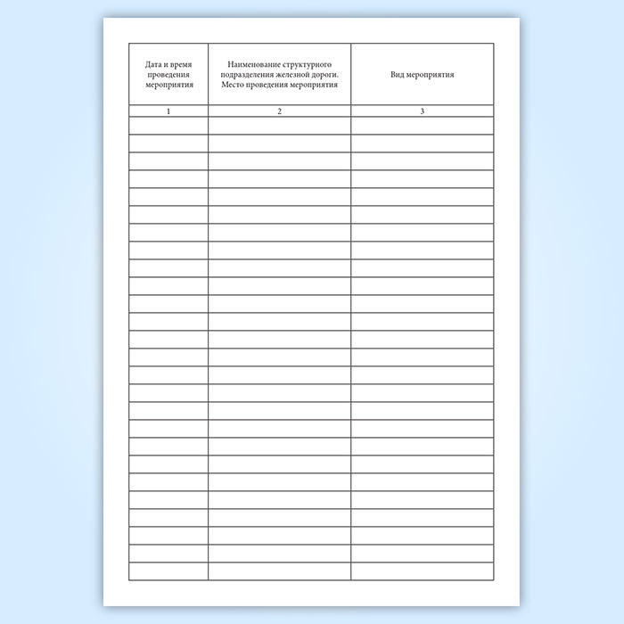 Форма журнала соответствует Приложению 3 к Распоряжению ОАО "РЖД" от 30.08.2006 N 1791р "Об утверждении Положения о вагоне охраны труда железной дороги"