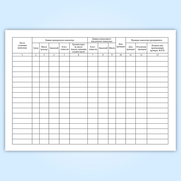 Книга регистрации периодических освидетельствований манометров имеет графы: