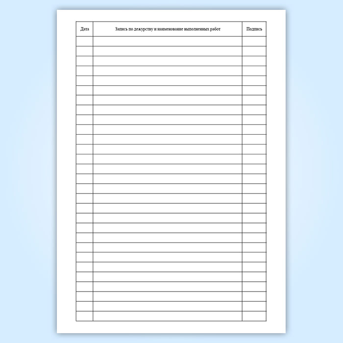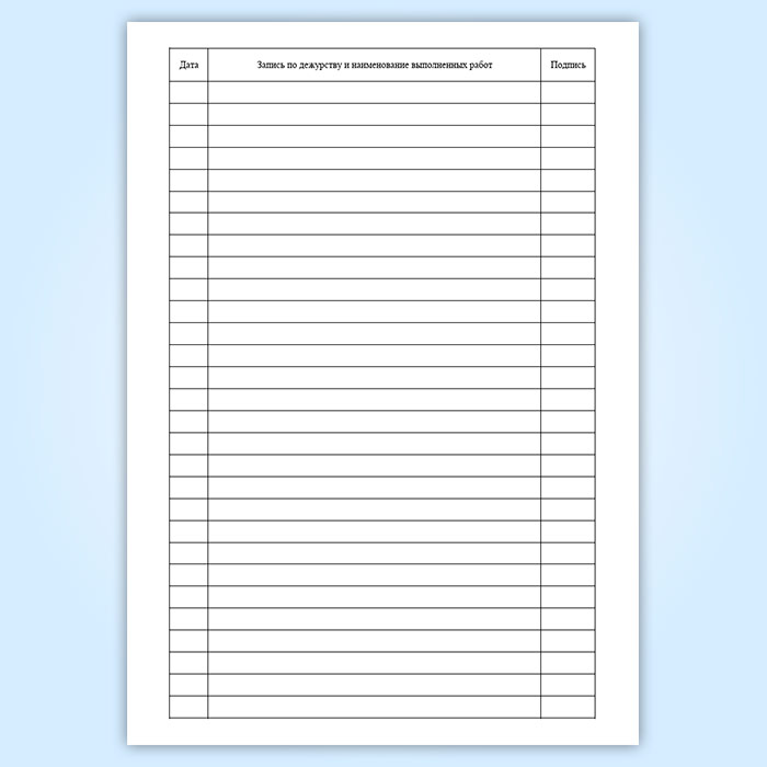 Запись по дежурству и наименование выполненных работ