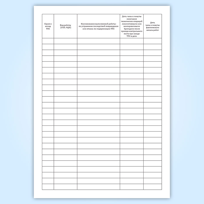 В книге ведется запись работ по всем узлам ТПС: механической части, электрической, пневматической, дизельной, АЛСН, радио и др.