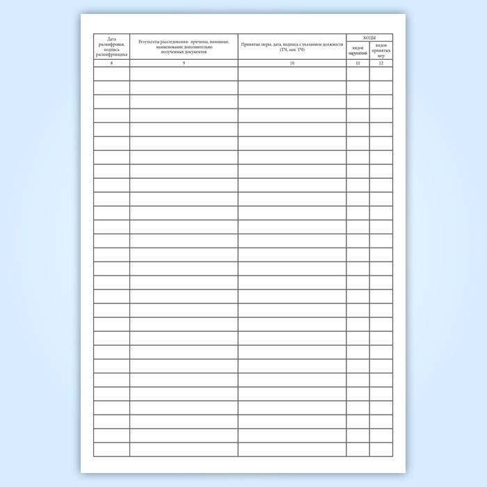 В гр. 8 расшифровщик после расшифровки ленты обязан записать дату расшифровки и поставить свою подпись.
