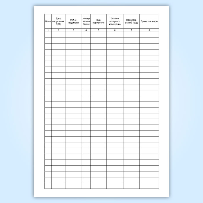 Журнал учета нарушений правил дорожного движения