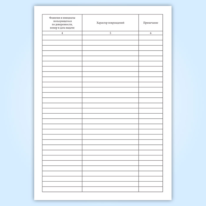4. Фамилия и инициалы пользующегося по доверенности, номер и дата выдачи
