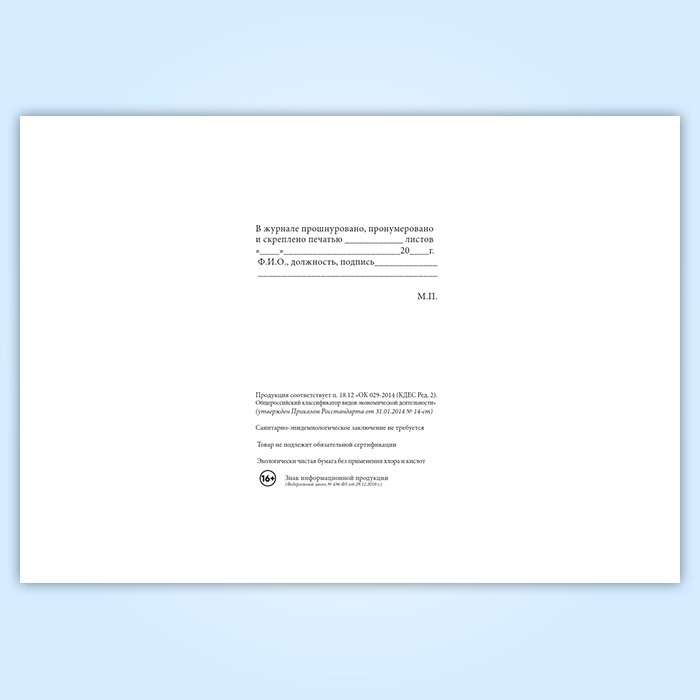 Вы получаете печатную продукцию прошнурованной и c местом для вашей печати в соответствии с действующими нормативными документами: