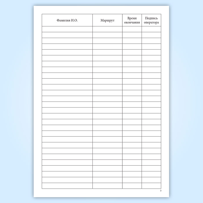 Учет сдачи маршрутных листов оператор транспортного предприятия контролирует, заполняя журнал учета.