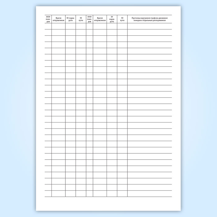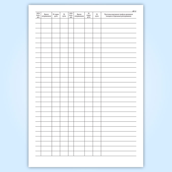 См. также журнал движения поездов и локомотивов для промежуточных станций (Форма ДУ-2), графы которого отличаются