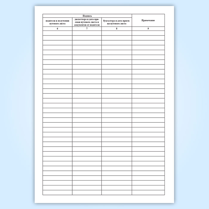 - водителя в получении путевого листа
