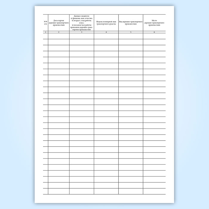 Также в продаже есть Журнал учета дорожно-транспортных происшествий, графы которого отличаются.