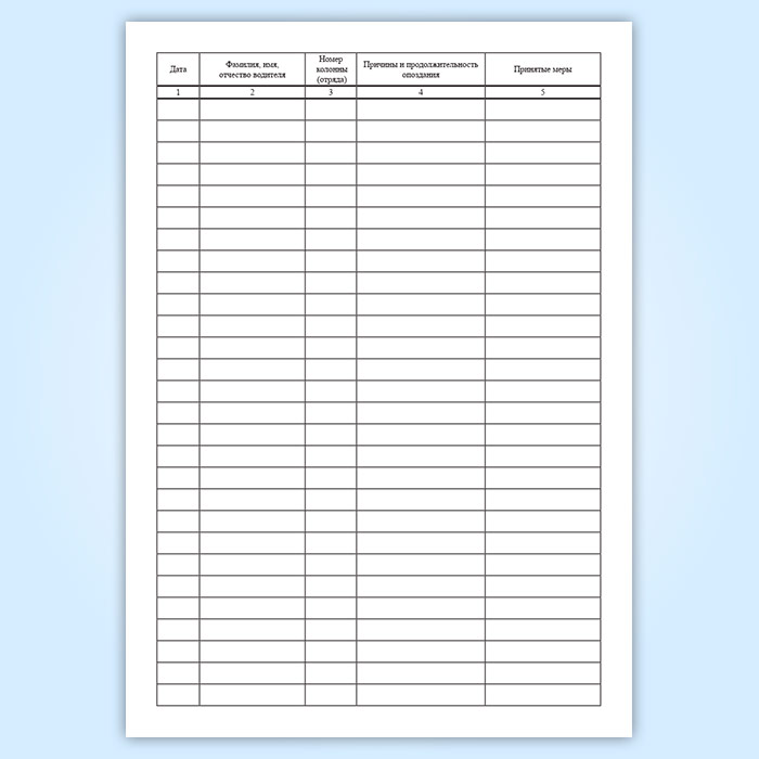 Журнал учета несвоевременного возвращения автомобилей в гараж после работы