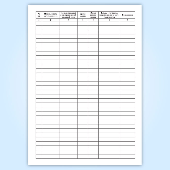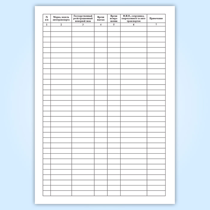 Согласно Приложению 6 к Наставлению по работе дорожно-патрульной службы Государственной инспекции безопасности дорожного движения Министерства внутренних дел РФ, предприятия, имеющие на балансе автотранспортные средства обязяны вести журнал ежедневного учета использования автотранспортных средств.