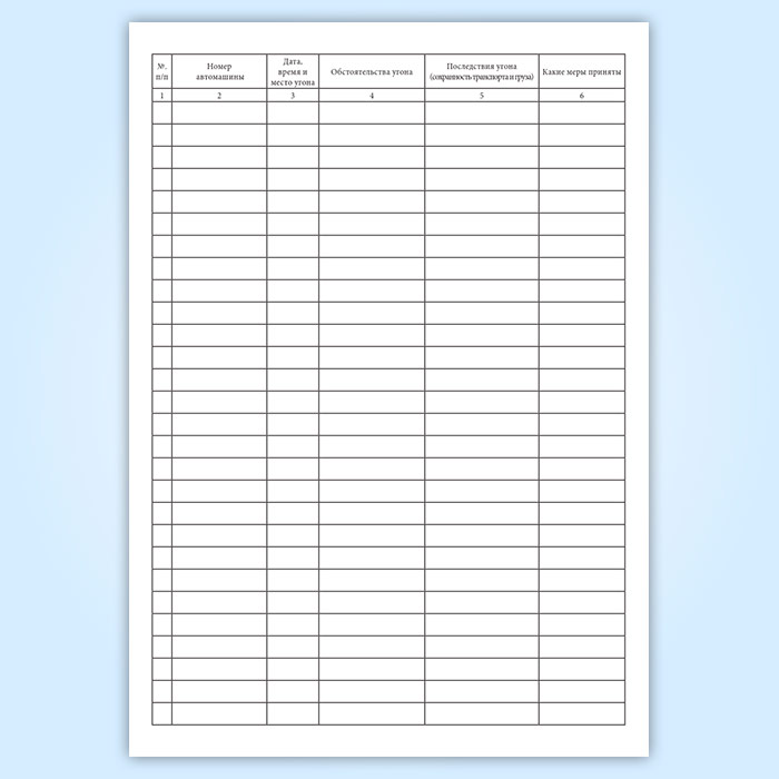 Журнал учета угнанного автотранспорта