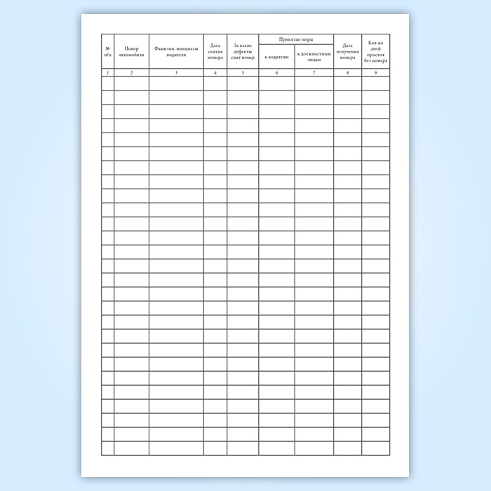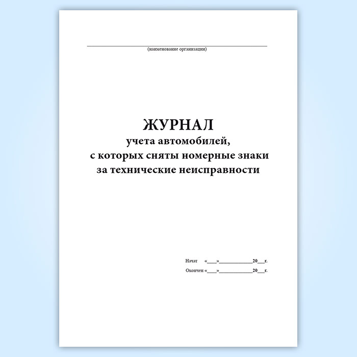 Журнал учета автомобилей, с которых сняты номерные знаки за технические неисправности