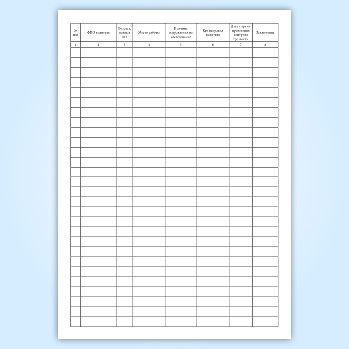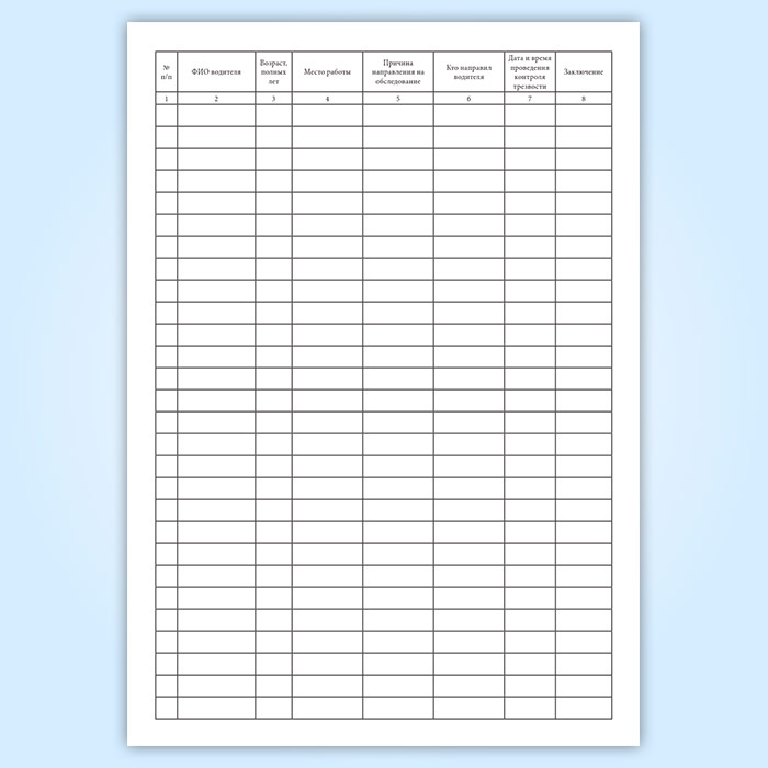 Журнал контроля трезвости водителя