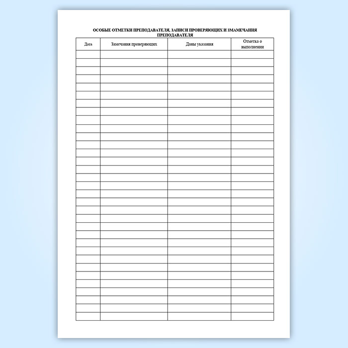 9. Особые отметки преподавателя, записи проверяющих и замечания преподавателя