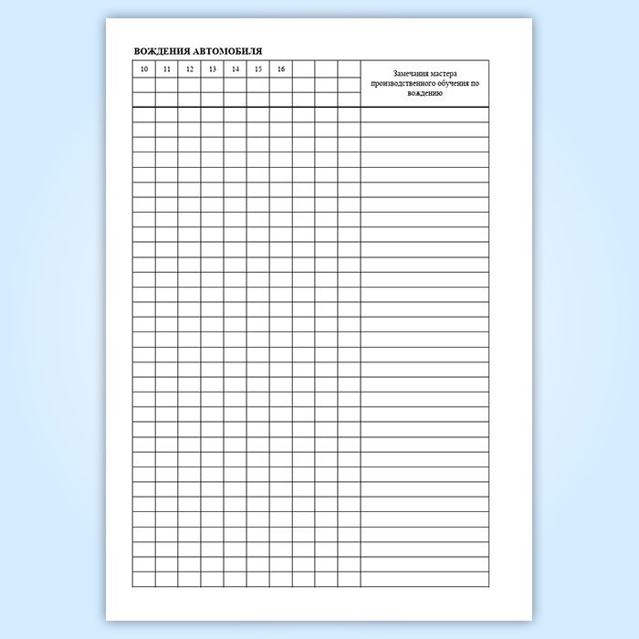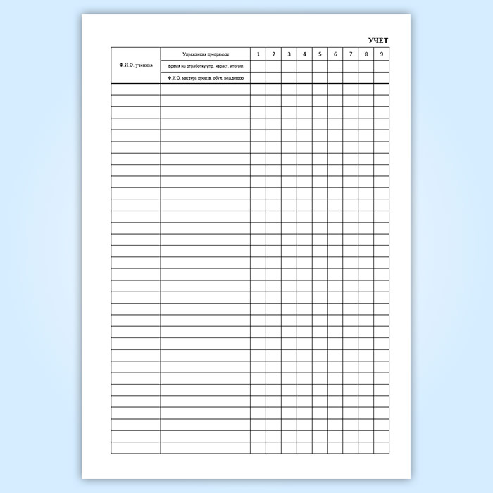 6. В разделе "Учет вождения автомобиля (мотоцикла)" проставляются упражнения из программы и часы вождения нарастающим итогом.