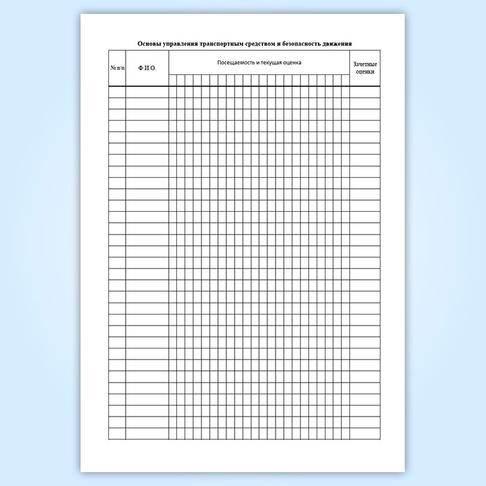 Журнал учета занятий по подготовке водителей транспортных средств категории «В»