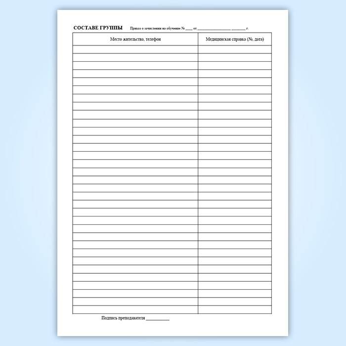 3. Журнал расчитан на одну группу на весь период обучения