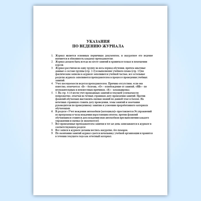 Указания по ведению журнала учета занятий по подготовке водителей транспортных средств категории "В"