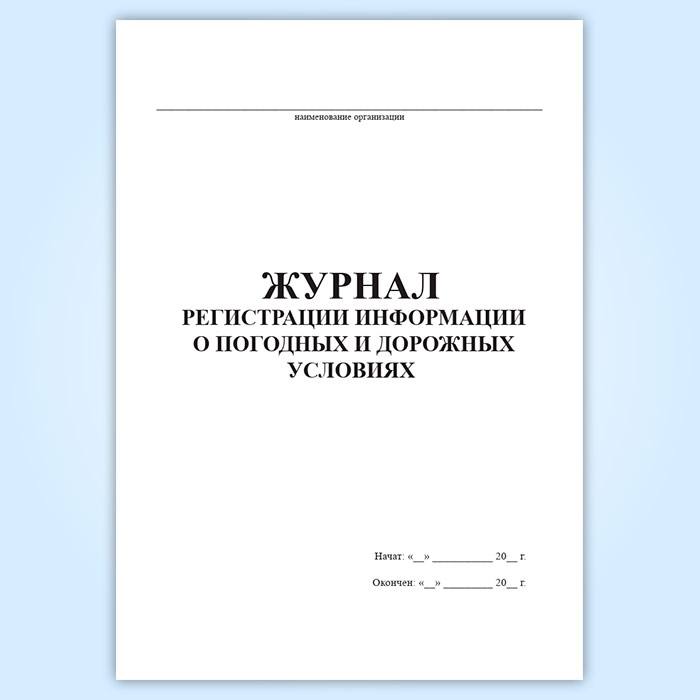 Форма журнала регистрации информации о погодных и дорожных условиях соответствует Приложению 9 к РД 39-22-637-81 Система организации и управления комплексом работ по обеспечению безопасности дорожного движения на транспорте нефтяной промышленности.