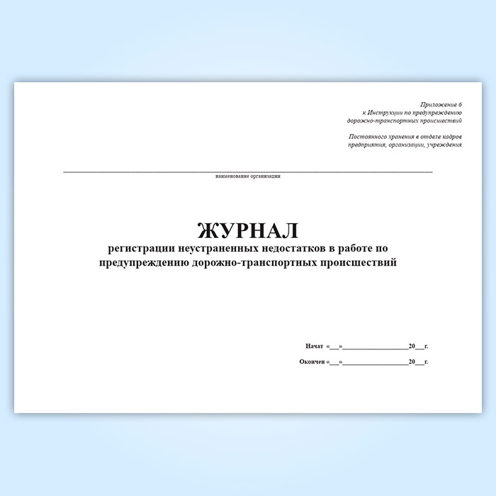 Журнал регистрации неустраненных недостатков в работе по предупреждению дорожно-транспортных происшествий