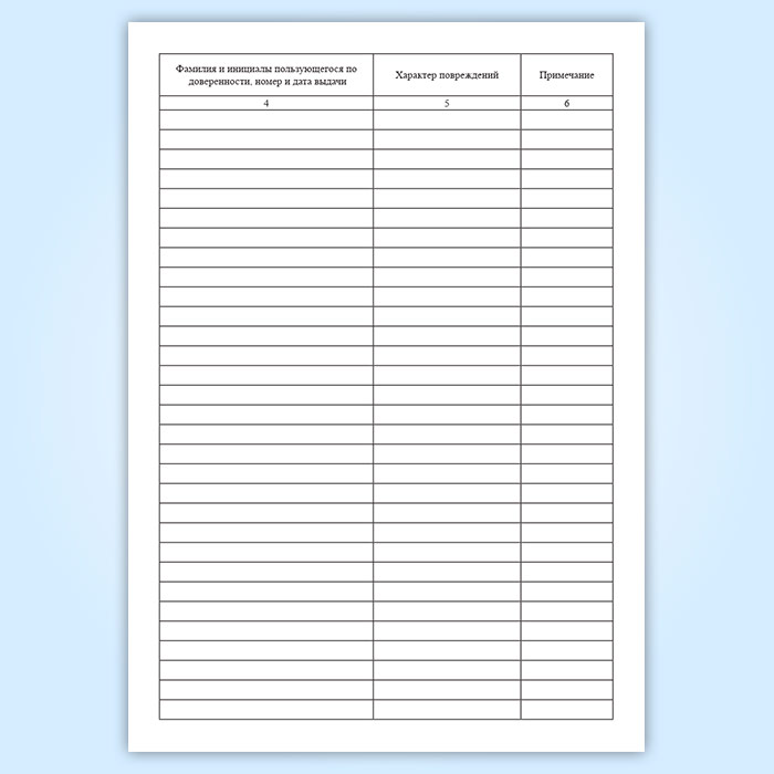4. Фамилия и инициалы пользующегося по доверенности, номер и дата выдачи