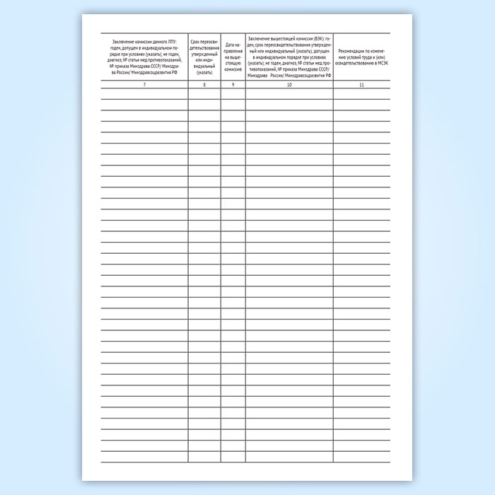 7. Заключение комиссии данного ЛПУ: годен, допущен в индивидуальном порядке при условиях (указать); не годен, диагноз, № статьи мед.противопоказаний, № приказа Минздрава СССР/ Минздрава России/ Минздравсоцразвития РФ