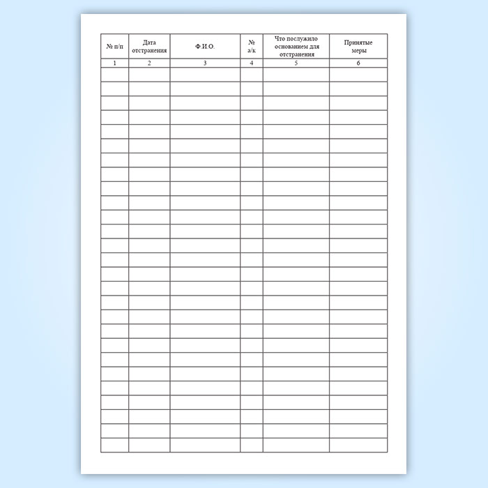 Водители, отстраненные от работы записываются в журнал регистрации водителей, отстраненных от работы.
