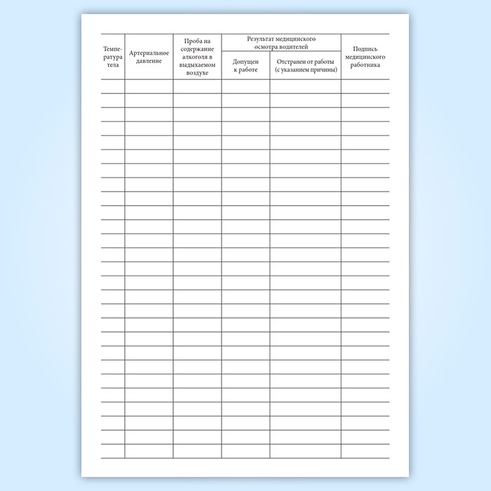 Журнал учета медицинского осмотра водителей