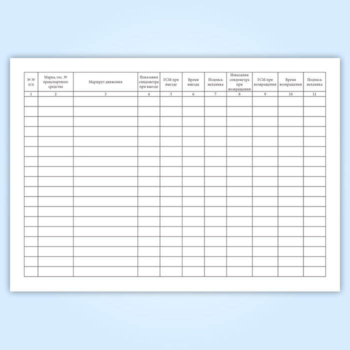 См. также Журнал учета выхода автомобиля на линию и возврата с линии, графы которого отличаются.