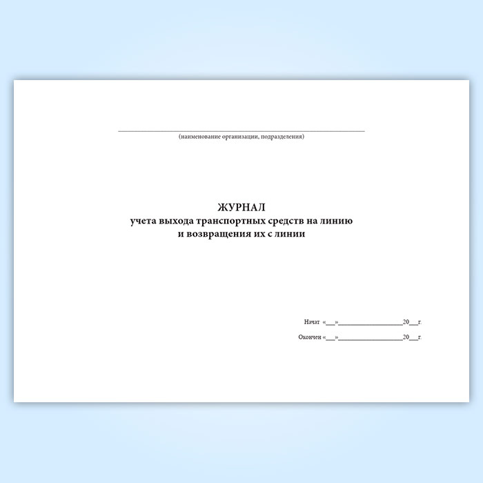 Форма журнала учета выхода транспортных средств на линию и возвращения их с линии соответствует Приложению 7 к РД 39-22-637-81 Система организации и управления комплексом работ по обеспечению безопасности дорожного движения на транспорте нефтяной промышленности.