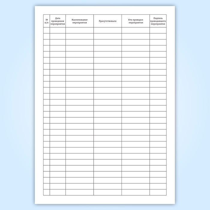 См. также Журнал учета мероприятий по безопасности движения, проводимых на предприятии, графы которого отличаются.