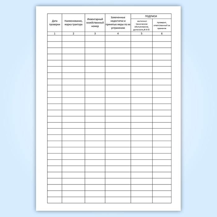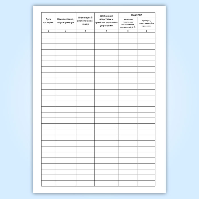 Журнал проверок технического состояния трактора в период хранения
