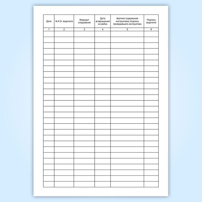 Журнала инструктажа водителей, убывающих в дальние рейсы имеет графы: