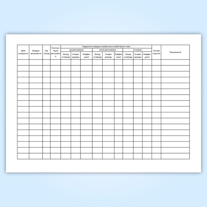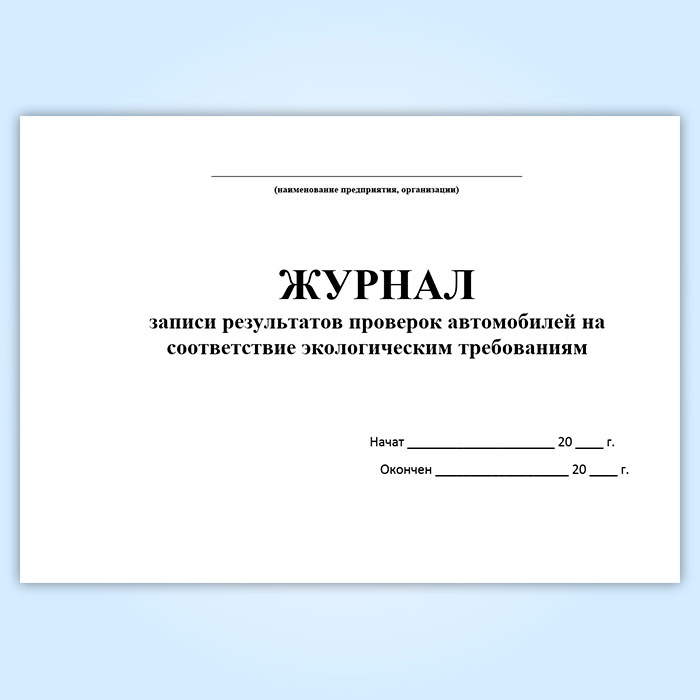 См. также: Журнал записи результатов проверки автомобилей с бензиновыми двигателями на соответствие экологическим требованиям
