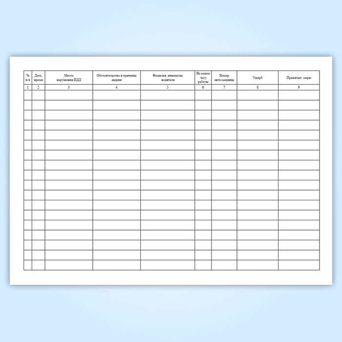 Для записи данных по учету нарушений правил движения с повреждением транспорта используют журнал.