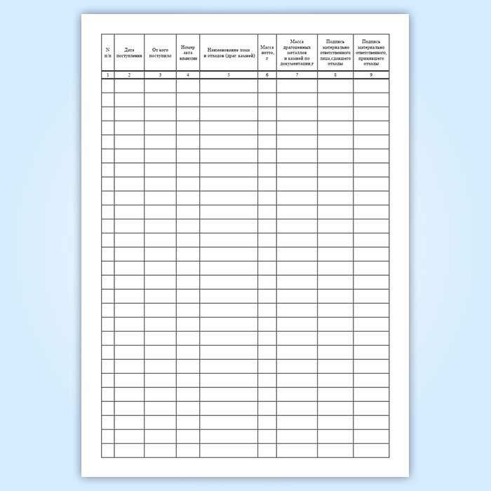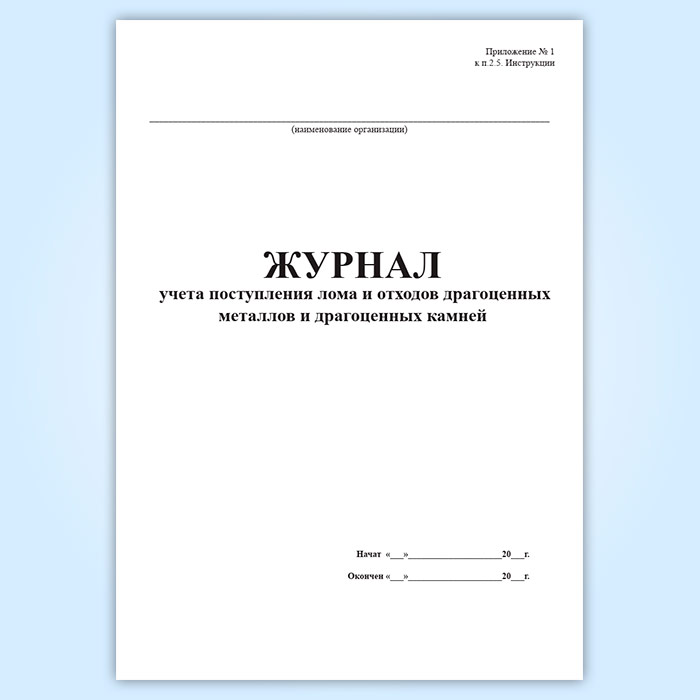 Журнал учета поступления лома и отходов драгоценных металлов и драгоценных камней