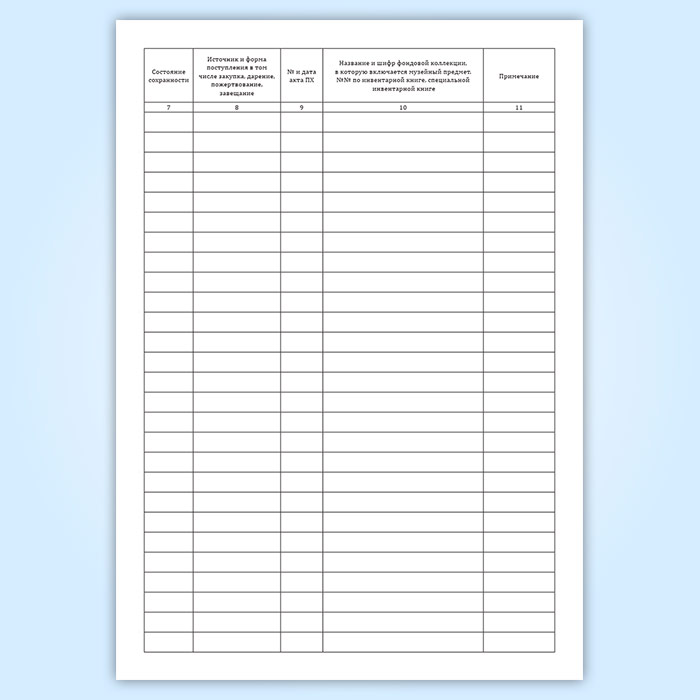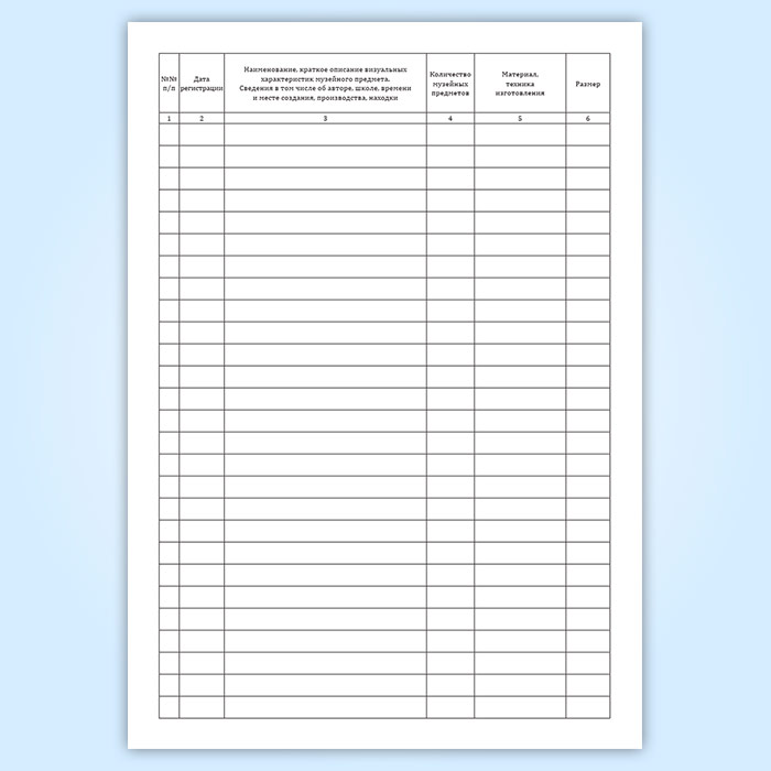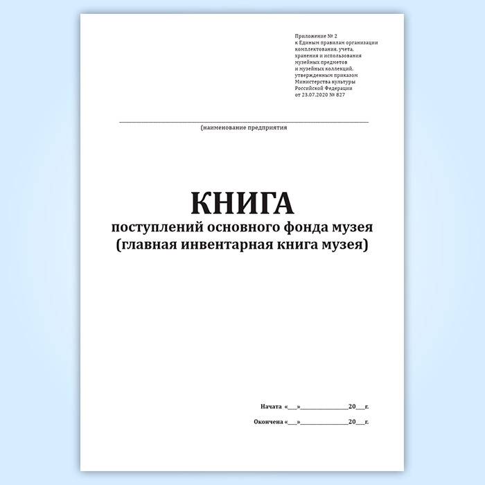Форма книги соответствует Приложению 2 к "Единым правилам организации комплектования, учета, хранения и использования музейных предметов и музейных коллекций"