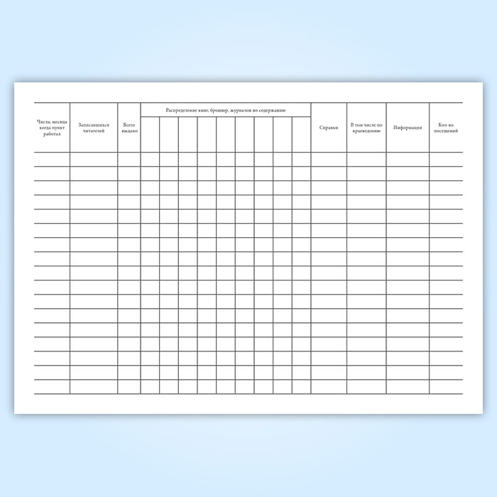 Дневник работы библиотечного пункта содержит графы для заполнения: