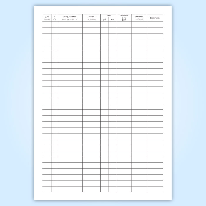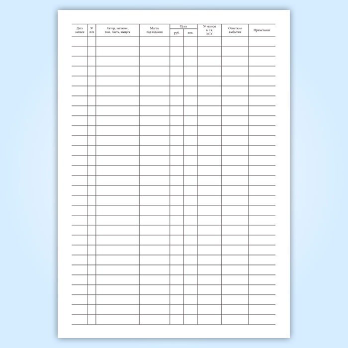 Регистрационная книга учетных карточек многоэкземплярной литературы
