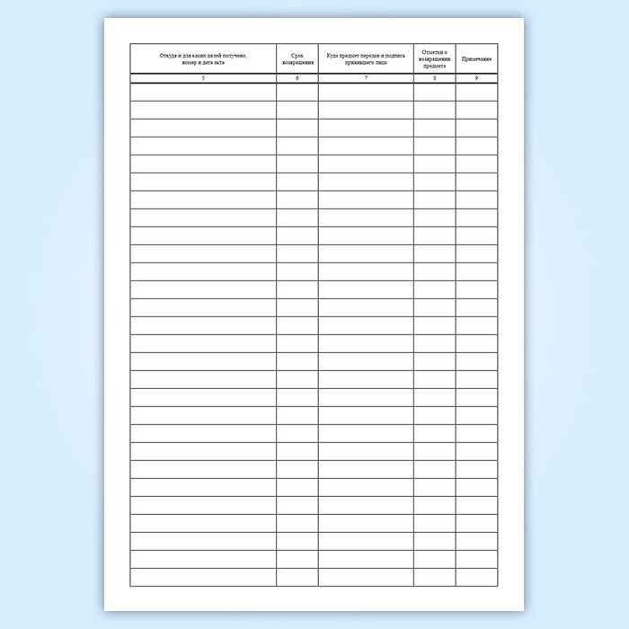 Форма книги поступлений во временное пользование в музеях военных фондов соответствует Приложению N 5 к п. 15 Положения, утвержденного Приказом Министра обороны Российской Федерации от 11 сентября 1997 года N 343, который утратил силу.
