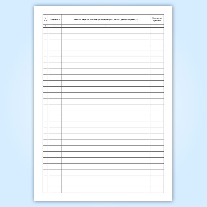 Книга поступлений во временное пользование в музеях военных фондов имеет графы: