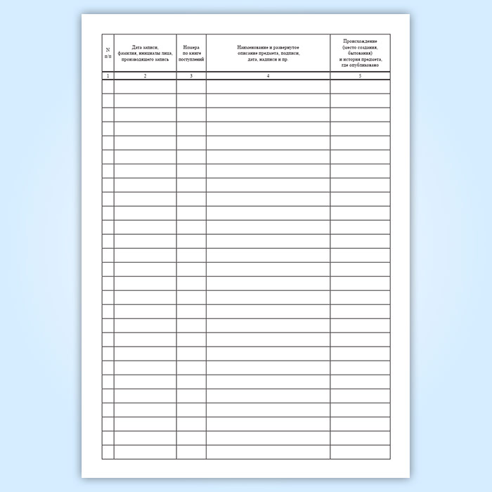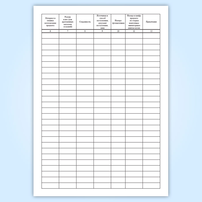 Инвентарная книга (научный инвентарь военного музея (музейного образования) (для музеев, кроме художественных) имеет графы: