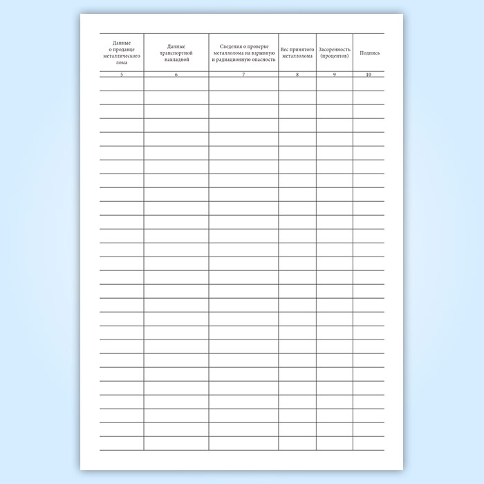Книга учета лома черных металлов имеет графы: