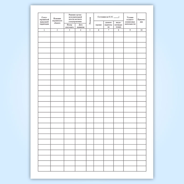 Журнал экологический содержит графы: