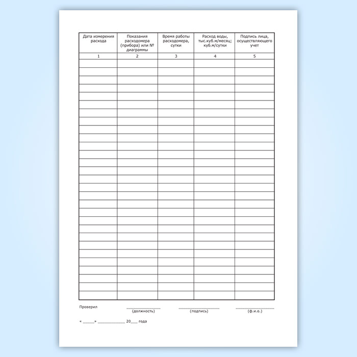 Журнал проверяется и подписывается руководителем соответствующей службы в сроки, определяемые периодичностью проведения замеров расхода воды.