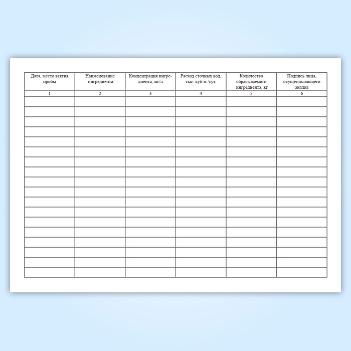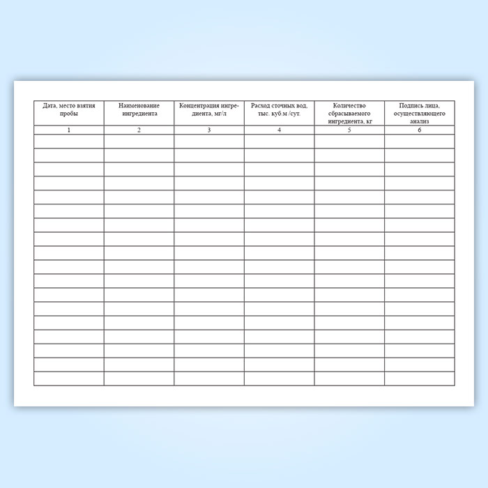 Форма применяется для учета количества ингредиентов, поступающих в водные объекты в составе сточных вод на каждом выпуске. Записи в журнале по форме ПОД-13 ведут на основании и по мере проведения физико-химических и биологических анализов сточных вод, результаты которых заносятся в графу 2.