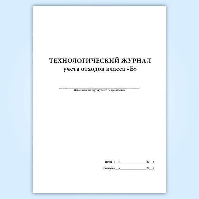 Технологический журнал учета обработки отходов класса Б