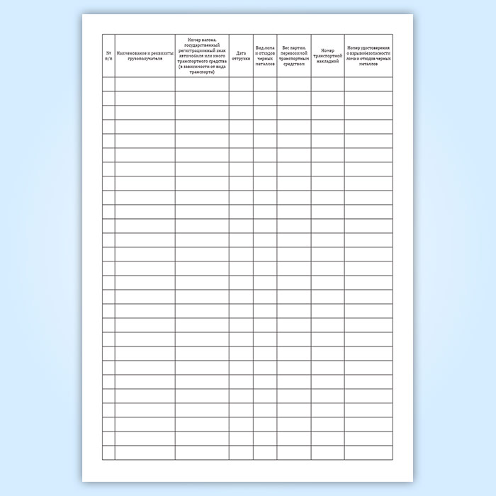 Журнал регистрации отгруженных лома и отходов черных металлов