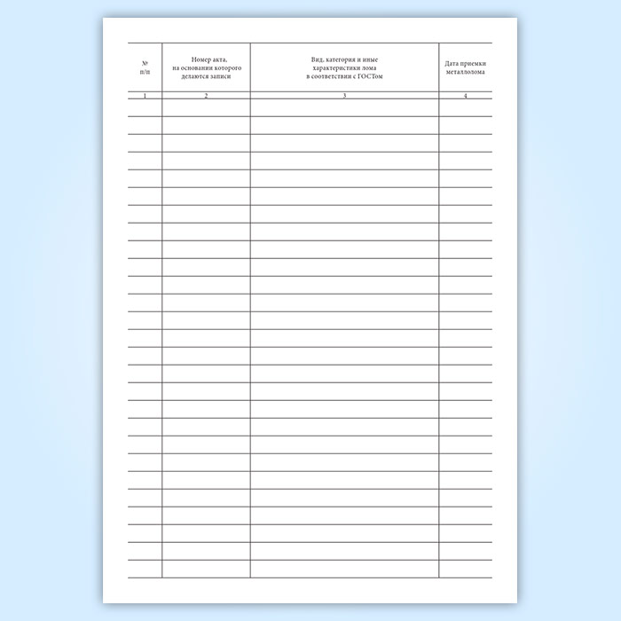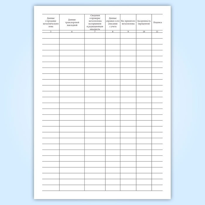Графы книги учета лома цветных металлов:
